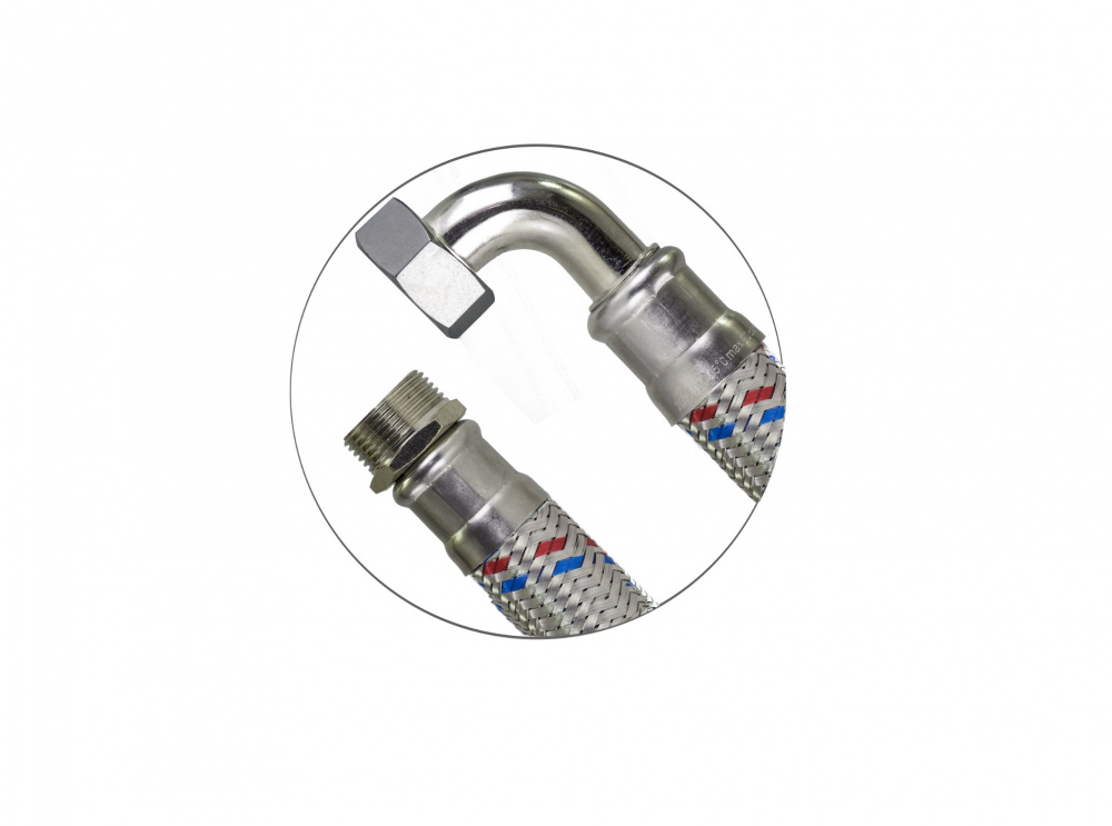 Шланг угловой с накидной гайкой и наружной резьбой диаметром 1" в металлической обмотке длиной 100 см. Используется для подключения насосов, насосных станций, гидроаккумуляторов, расширительных баков и т.д. Рабочее давление до 20 бар. Рабочая температура от 0°C до 95°C. Характеристики