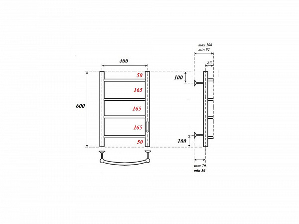 PN04846 Полотенцесушитель электрический Point Афина PN04846 П4 400x600 диммер справа, хром