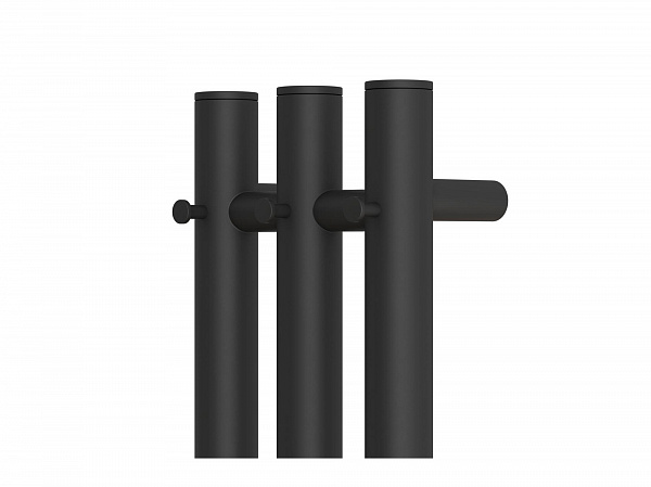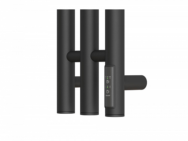 Полотенцесушитель электрический Point Деметра PN12822B с круглыми вертикальными перекладинами в черном матовом цвете - идеален впишется в интерьер вашей ванной комнаты, он был разработан с учетом всех требований безопасности. Полотенцесушитель с элегантным дизайном и полированным покрытием. Форма и его габариты превосходны: высота - 1200 мм, ширина - 120 мм и глубина от стены всего 50 мм. Для обеспечения надлежащей производительности устройство имеет три вертикальные перекладины, с двумя крючками на каждой, которые соеденины шестью небольшими горизонтальными перекладинами. Размеры и мощность дают оптимальную температуру нагрева для использования в ванной комнате. Для управления температурой есть диммер с тремя режимами работы: 60%, 80% и 100%, переключение режимов происходит с помощью однократного нажатия кнопки включения. Устройство также оснащено таймером от 2 до 6 часов с аналогичным управлением. В комплекте есть электрокабель длиной 100 см с вилкой и комплект для скрытого подключения к сети. Полотенцесуши Характеристики