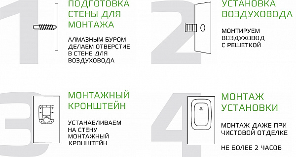 Приточно-очистительный комплекс BREZZA подает свежий, насыщенный кислородом, воздух с улицы в помещение площадью до 75 м2.