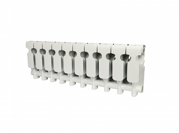 Алюминиевый секционный радиатор для автономных систем отопления (дача, котедж и т.д.). При высоте потолка 2.5 - 2.75 м и средних теплопотерях 10 секции ROMMER Plus с межосевым расстоянием 200 мм достаточно для обогрева 9 м?. Характеристики