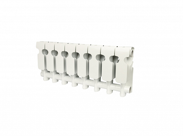 Алюминиевый секционный радиатор для автономных систем отопления (дача, котедж и т.д.). При высоте потолка 2.5 - 2.75 м и средних теплопотерях 8 секции ROMMER Plus с межосевым расстоянием 200 мм достаточно для обогрева 8 м?. Характеристики