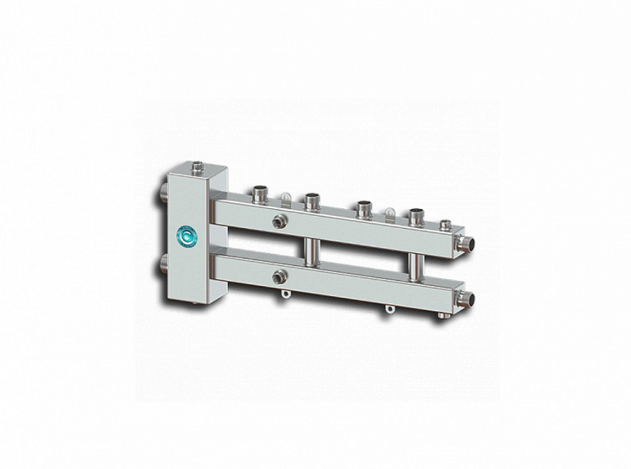 Гидравлический разделитель из нержавеющей стали СЕВЕР М2+1 AISI совмещенный с коллектором на 3 контура системы отопления. Применяется в системе отопления для разделения контура котла (котлов) и отопительных контуров. Позволяет организовать три независимых контура системы отопления с или без смесительных контуров, с циркуляционными насосами. Гидроколлектор Север М2+1 имеет возможность подключения 2-х контуров отопления направленных вверх или вниз, один контур отопления, направленный вбок (влево или вправо). Гидроколлектор можно развернуть как вокруг горизонтальной, так вертикальной оси. Подключение коллектора с гидрострелкой Север М2+1 AISI: Три контура системы отопления Подключение контура котла (котлов): 1 1/4" н.р. Подключение контуров: 1" н.р. Межосевое расстояние контуров (унифицированы с системами других производителей): 125мм Подключение воздухоудалителя на гидрострелке: 1/2" в.р. Нижний патрубок на гидрострелке (для слива коллектора, подключение расширительного. бака, подпитки и т.д.): 1/2" в.р. Характеристики