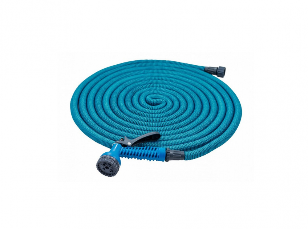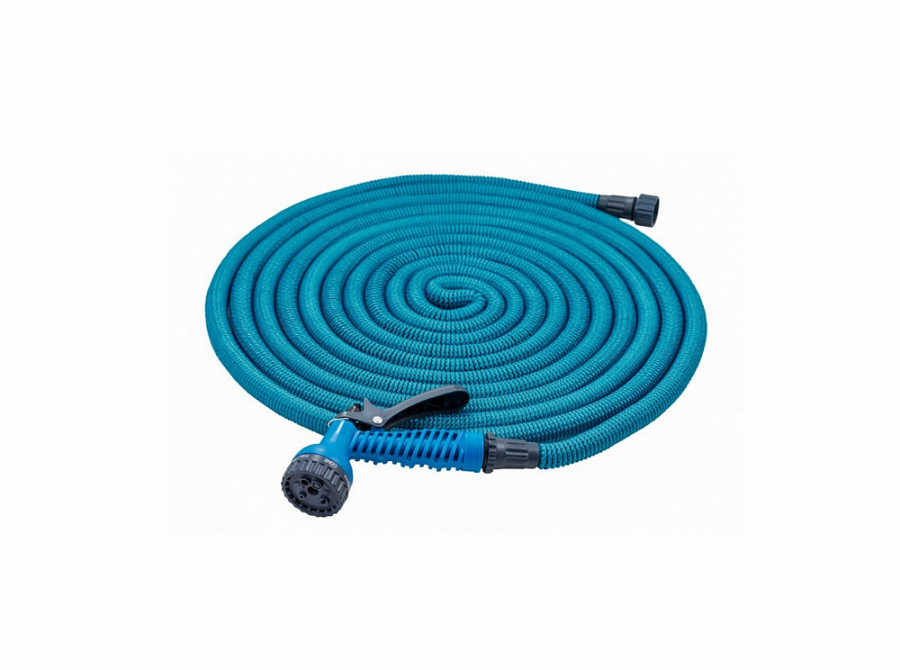 Шланг поливочный растягивающийся при поступлении воды и возвращающийся в первоначальное состояние после прекращения подачи воды. Длина в рабочем состоянии 15 м, в нерабочем уменьшается в 3 раза. Подключение 3/4" внутр. резьба, на конце имееет распылитель с 7 режимами работы (можно убрать распылитель и соединить несколько шлангов). Характеристики