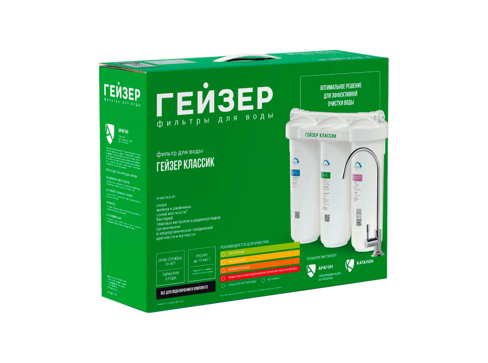 Фильтр Гейзер Классик для жесткой воды специально разработан для регионов со средним уровнем минерализации. Важным свойством фильтра является самоидикация - уменьшение напора в кране для чистой воды, фильтр сам подскажет, когда пришло время менять картриджи. Картридж Арагон 2 можно многократно регенерировать (восстанавливать его свойства в домашних условиях), что позволит Вам сэкономить на покупке сменных картриджей. Оптимальное сочетание цена - качествоИдеальное решение для очистки жесткой воды
