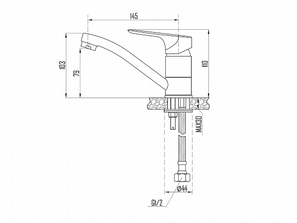 Смеситель среднего ценового с коротким изливом позволяет использовать его как для кухни, так и для раковины в ванной комнате или техническом помещении. Крепление к раковине осуществляется при помощи шпилек, входящих в комплект смесителя. От аналогичных смесителей базового сегмента отличается изящностью дизайна и тщательностью обработки деталей. В качестве запорной арматуры используется картридж типоразмера 35 мм. Отражатель картриджа - из латуни с никель-хромовым покрытием. Длина излива по осям корпус-аэратор составляет 145 мм. Высота от уровня столешницы до аэратора составляет 79 мм. Максимальная высота смесителя - 110 мм. В комплектацию входит качественная подводка DEVIDA длиной 50 см с оплеткой из фибронейлона. Смеситель оснащен ручкой с плоской верхней гранью без отверстия на рычаге. Характеристики