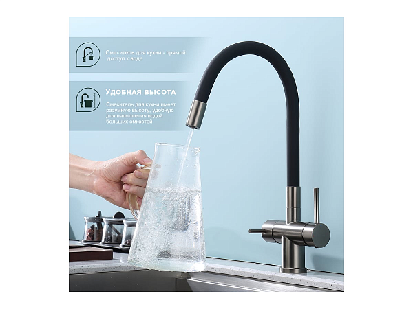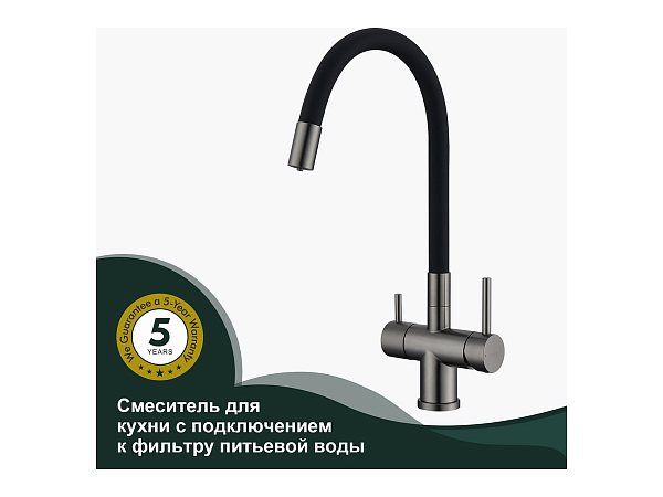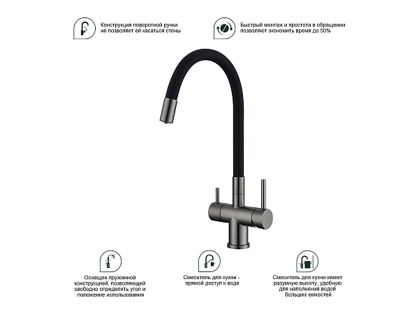 Смеситель для кухни с краном для фильтра Splenka S70.64.09, гибкий излив, цвет: графит