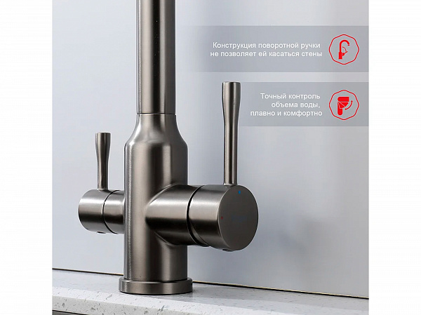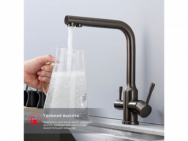 Смеситель для кухни с краном для фильтра RAGLO R81.61.09, цвет: графит
