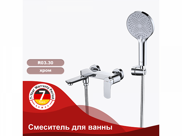 Однорычажный смеситель для ванной комнаты R03.30 от RAGLO в цвете хром. Характеристики: Назначение: для ванны, для ванной комнаты, для ванной. Управление - Однорычажный.. Функции излива - поворотный. Размер излива - короткий. Материал - латунь. В комплекте: душевая лейка, держатель лейки, комплект отражателей, комплект эксцентриков. Способ монтажа - настенный. Переключение на душ - поворотное. Тип подводки - жесткая подводка. Тип картриджа - экономичный, керамический 35 мм. Область применения - бытовая. Монтаж -на стену. Длина шланга- 150 см. Отверстия для монтажа- на 2 отверстия. Стандарт подводки- 1/2". Оснащение- аэратор, крепления, держатель для душевой лейки, душевая лейка, душевой шланг, эксцентрики. Дизайн- современный стиль. В этой серии есть смеситель на раковину R03.10 хром - один цвет- одна серия. 7 лет гарантия! Характеристики