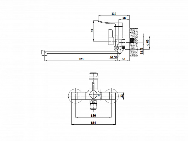 Смеситель для ванны Splenka S31.22.06 с поворотным изливом 323 мм, цвет: черный