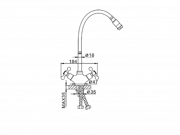 Смеситель для кухни двухвентильный в цвете бронза - FRAP F4330-4. Имеет гибкий излив, позволяющий пользоваться подачей воды не только над мойкой, комфортно использовать любые емкости на Вашей кухне. Трубка излива заключена в прочный шланг из силикона белого цвета. Монтаж на одно отверстие, в комплекте имеются гибкая подводка 45 см и гайка. Керамический картридж обеспечивает напор и выбранную температуру. Характеристики