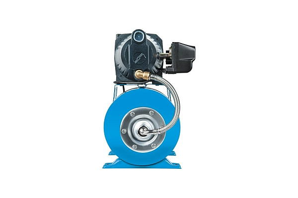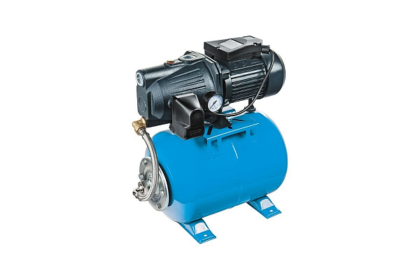Станция автоматического водоснабжения состоит из насоса, 24-х литрового гидроаккумулятора и автоматического реле. Центробежный поверхностный насос c удлиненным встроенным эжектором JET L, электрической мощностью 1050 Вт, позволяет поднимать (засасывать) воду с глубины до 8 метров и создает давление воды после себя ~4.3 атм (43 метров).