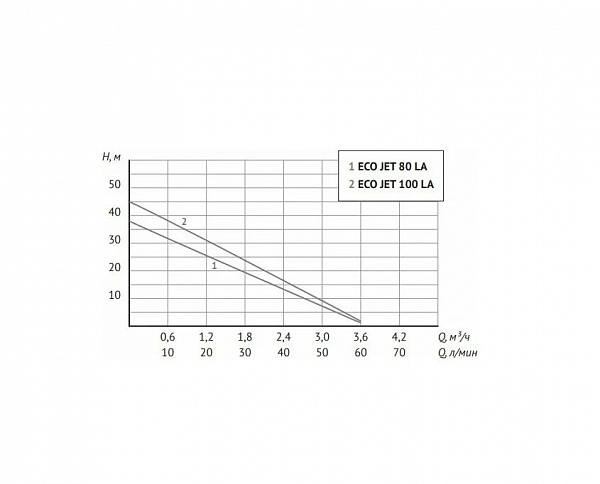 Центробежный поверхностный насос c удлиненным встроенным эжектором ECO JET LA, электрической мощностью 600 Вт, позволяет поднимать (засасывать) воду с глубины до 8 метров и создает давление воды после себя ~3.8 атм (38 метров).