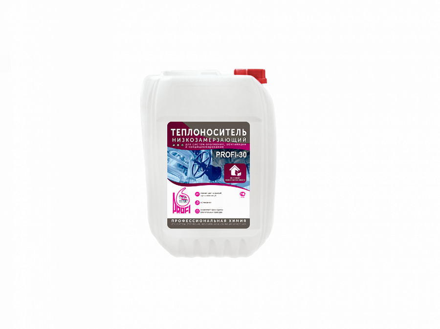 Низкозамерзающий теплоноситель PROFI - 30 – современный антифриз разработан в соответствии с лучшими мировыми стандартами. Теплоноситель в отоплении и кондиционировании применяют для запуска систем при отрицательных температурах. Теплоноситель PROFI - 30 — на основе моноэтиленгликоля с температурой начала кристаллизации -30 °С. Не требуется разводить подготовленной водой. Применяется в герметичных, закрытых системах. Характеристики
