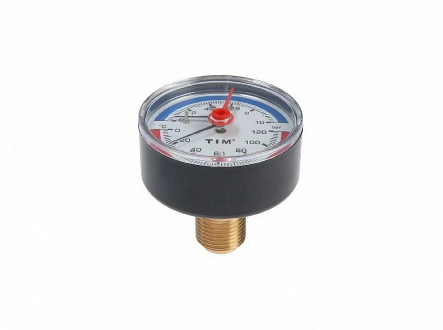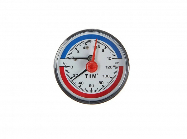 Термоманометр аксиальный 10 бар TIM 1/2" н.р., Ø корпуса=63 мм, t=0...120°С