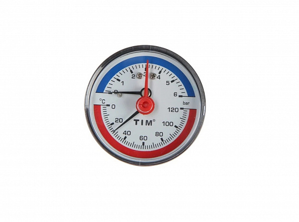 Термоманометр аксиальный 6 бар TIM 1/2" н.р., Ø корпуса=63 мм, t=0...120°С
