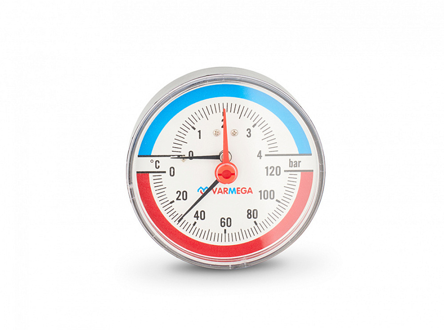 Термоманометры Varmega являются аналоговыми измерительными приборами, которые предназначены для показа текущего давления и температуры в бытовых гидравлических системах (отопление и водоснабжение).