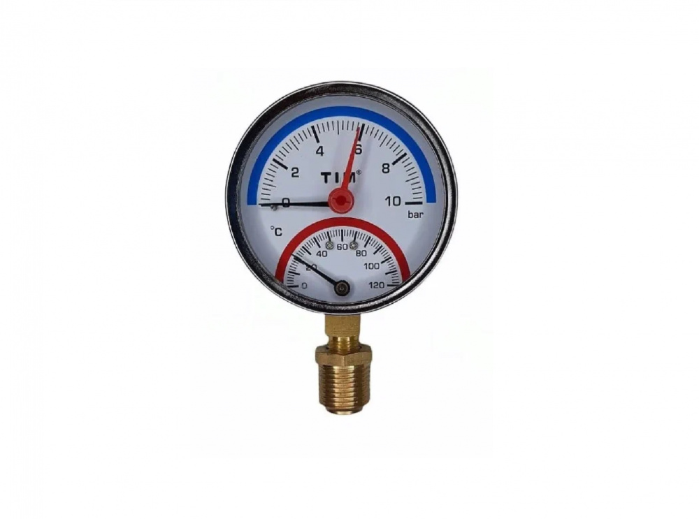 Термоманометр радиальный 10 бар TIM 1/2" н.р., Ø корпуса=80 мм, t=0...120°С