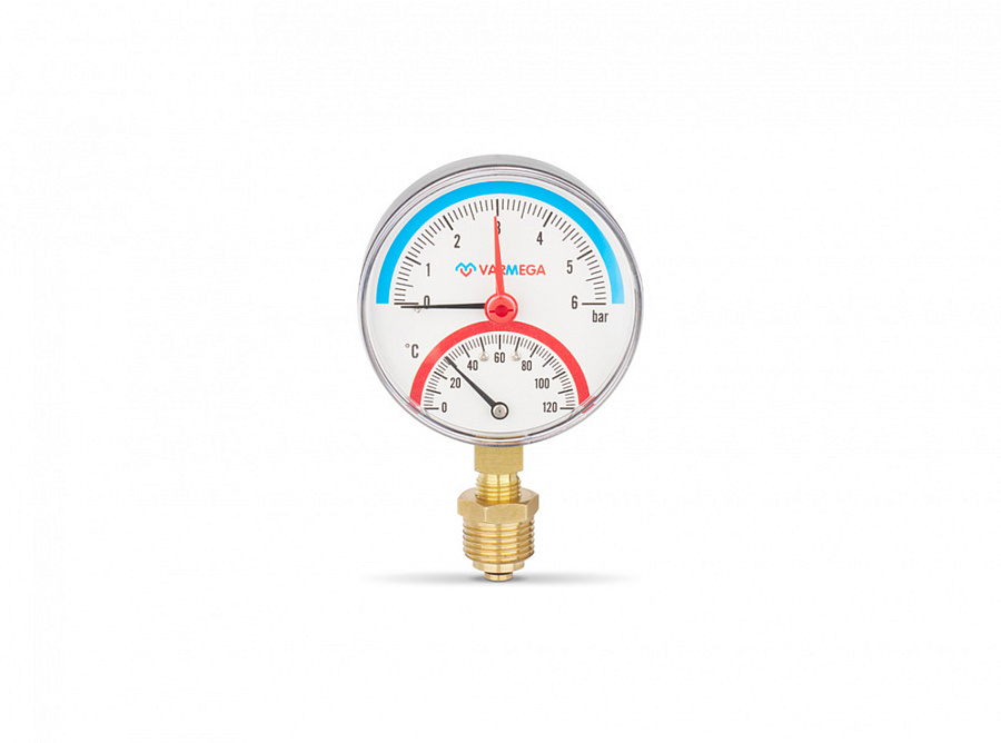 Термоманометры Varmega являются аналоговыми измерительными приборами, которые предназначены для показа текущего давления и температуры в бытовых гидравлических системах (отопление и водоснабжение).
