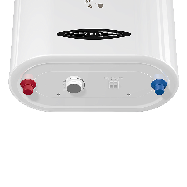 - Компактный размер и универсальный монтаж. Водонагреватели серии Aris изготовлены по технологии Double Tank, благодаря которой корпус бака становится максимально плоским и одновременно вместительным, поскольку полезный объем не теряется. Глубина корпуса в серии Aris составляет от 25 до 29 мм. Такой водонагреватель проще разместить в помещении, а также можно спрятать в нишу. Помимо узкого корпуса, водонагреватели этой серии можно повесить на стену как в вертикальном, так и горизонтальном исполнении, что еще больше способствует экономии пространства.