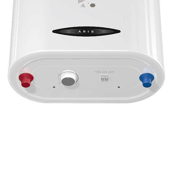 - Компактный размер и универсальный монтаж. Водонагреватели серии Aris изготовлены по технологии Double Tank, благодаря которой корпус бака становится максимально плоским и одновременно вместительным, поскольку полезный объем не теряется. Глубина корпуса в серии Aris составляет от 25 до 29 мм. Такой водонагреватель проще разместить в помещении, а также можно спрятать в нишу. Помимо узкого корпуса, водонагреватели этой серии можно повесить на стену как в вертикальном, так и горизонтальном исполнении, что еще больше способствует экономии пространства.