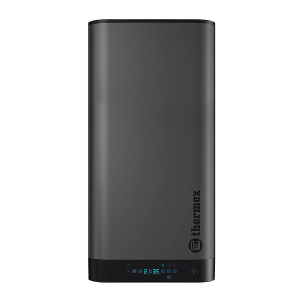 - Современные функции и приятный интерфейс. На фронтальной стороне водонагревателя расположена универсальная панель управления – показания времени и температуры автоматические меняют расположение в зависимости от монтажа бака. Управление полностью электронное и интуитивно-понятное: индикации на панели показывают режим работы, температуру и возможность настройки до градуса, текущее время, работу режимов защиты. А благодаря технологии Wi-FI Motion функционал работы становится более широким. Через приложение Thermex Home пользователь может из любой точки мира настроить алгоритм работы по дням или часам, установить таймер, а также подключить к голосовому помощнику Алиса.