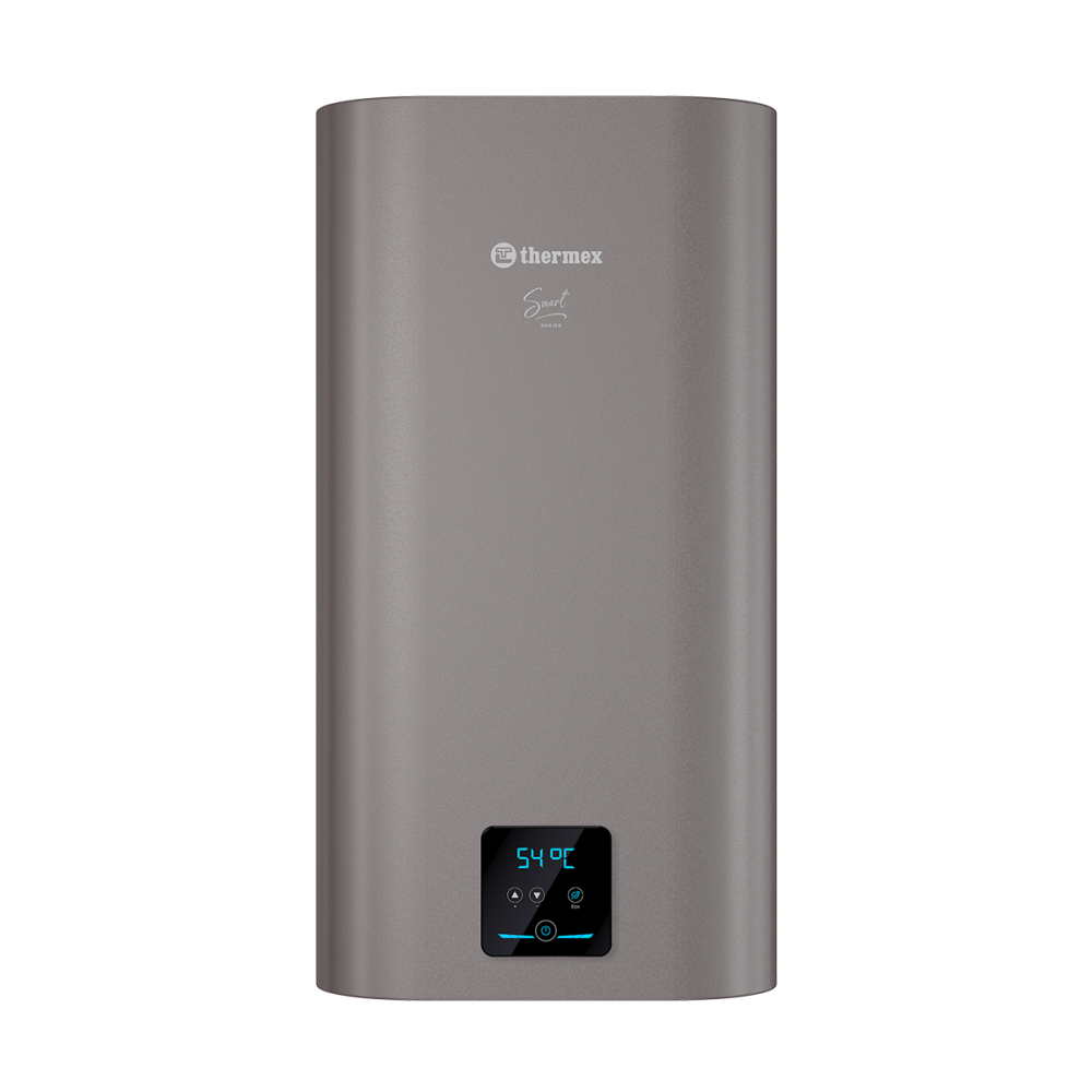 Яркий и стильный водонагреватель в прямоугольном корпусе с матовым покрытием. Thermex Smart - мощный, экономичный и удобный для размещения аппарат, который стал не только надежным решением вопросов горячего водоснабжения, но и полноценной частью интерьера.Отличительными особенностями Thermex Smart стали форма корпуса, долговечный внутренний бак, экономичность и современная панель управления. Thermex Smart отлично подойдет как прогрессивным городским жителям, так и для тех, кто совершенствует свой уровень комфорта в загородных домах.