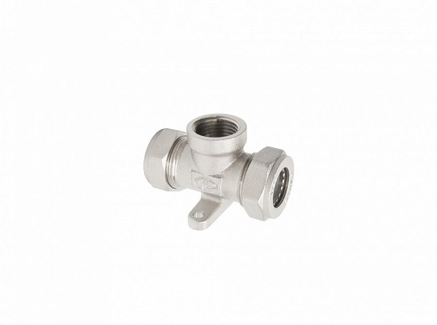 Тройник с креплением 15-1/2"-15 внутр. резьба никелированный для гофрированной трубы Lavita