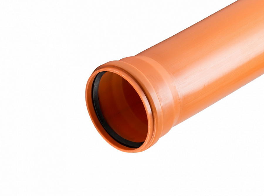 Труба для наружной канализации, полипропиленовая диаметром 110 мм с толщиной стенки 4,9 мм. Класс кольцевой жесткости SN4 позволяет заглублять трубопровод в естественный плотный грунт с хорошим сцеплениемгрунт (с небольшой интенсивностью движения транспорта) на глубину не более 6 метров. Длина без ратруба 2,0 м, с раструбом 2,06 м. Цвет - рыжий. Характеристики