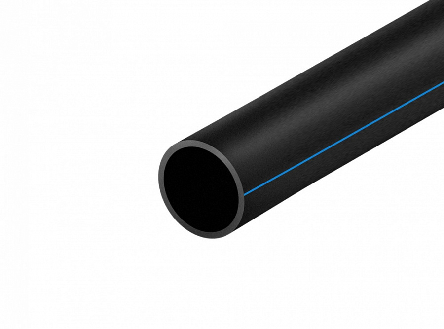 Труба полиэтиленовая ПЭ100 для холодного водоснабжения с наружним диаметром 63 мм и толщиной стенки 4,7 мм SDR13,6 (внутренний диаметр 53,6 мм, внутренний объем 1 метра трубы 2,256 л.) Изготовлена в соответствии ГОСТ 18599-2001. Рабочая температура – до +40°С (кратковременно до +80°С). Номинальное давление при +20°С - 12,5 атм. Цвет: Черный с синей полосой. Труба ПНД поставляется бухтами по 100 метров. Характеристики