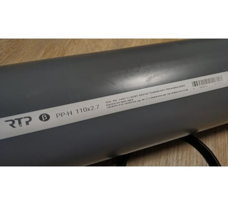 Труба канализационная полипропиленовая диаметром 110 мм с толщиной стенки 2,7 мм. Длина без ратруба 1,0 м, с раструбом 1,06 м. Цвет - серый Характеристики
