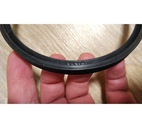 Двухкомпонентный пластик, белая полоса - это белый пластик, видно на срезе. На нём лазером нанесена вся маркировка, всё читается чётко. Надписи стираются только если усердно целенаправленно скоблить чем-то острым/образивным. Отличная уплотнительная резинка, мягкая, гладкая, похоже EPDM. Даже производителя не постеснялись указать - MOLSSEN. С заглушкой RTP стыкуется хорошо и ровно.