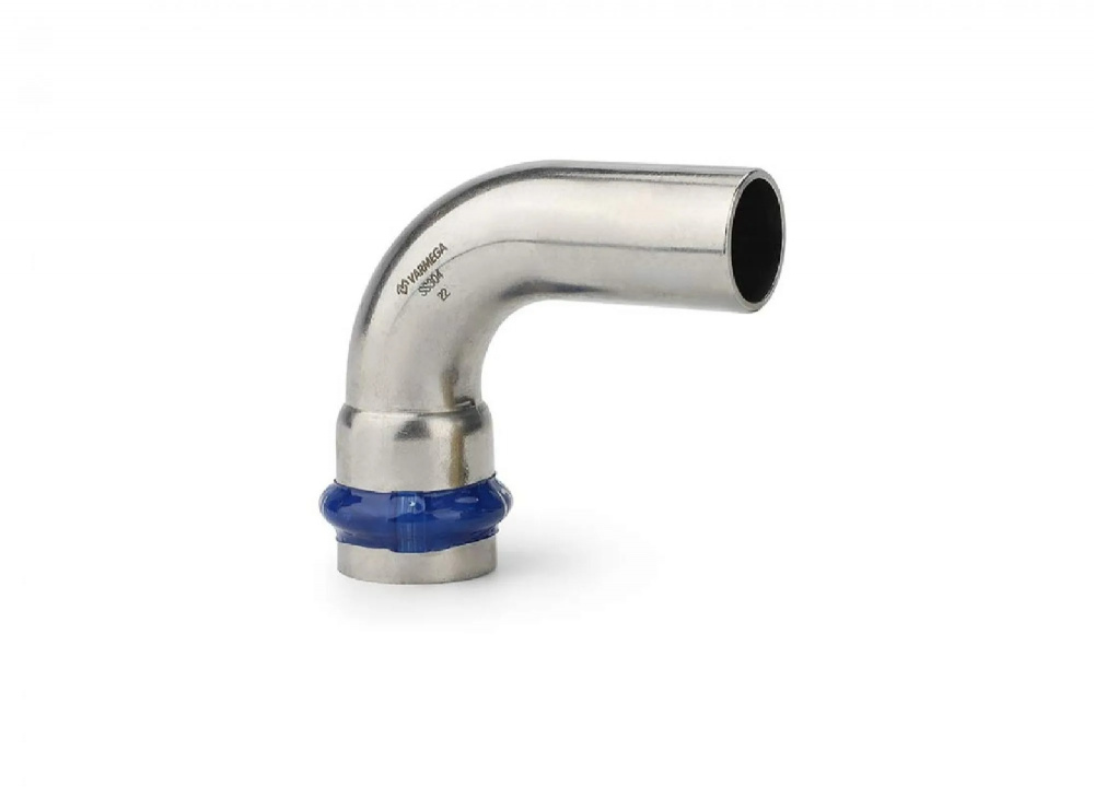 Угольник 90° однораструбный Varmega Inox Press используется для соединения труб и фитингов равных диаметров под углом 90 градусов. Для получения надежного неразъемного соединения трубы и фитинга потребуется специальный пресс-инструмент с насадками типа профиль «V».