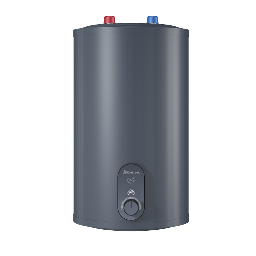 - Удобное и компактное оборудование. Малолитражные водонагреватели пользуются популярностью за счет своего небольшого размера и практичного размещения. Thermex Golf имеет стандартную круглую форму корпуса, а также возможность верхнего или нижнего подключения. Размер бака объемом 10 литров составляет 380 мм в высоту, 270 мм в ширину и 310 мм в глубину.