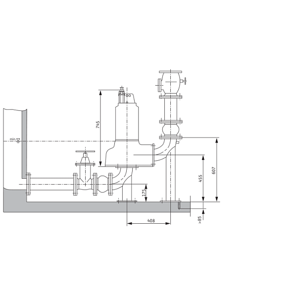 Погружной насос для отвода сточных вод для длительного режима работы для стационарной и мобильной установки в погруженном состоянии, а также для стационарной установки в непогруженном состоянии.