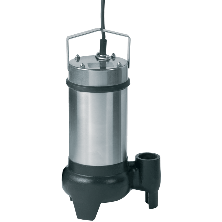 Погружной блочный агрегат для вертикальной установки в погруженном состоянии для перекачивания загрязненных и сточных вод. Насос с вертикальным напорным патрубком и внутренней резьбой. Электродвигатель со защитой от перегрева (автоматическое повторное включение после охлаждения электродвигателя), установленным поплавковым выключателем и разъемным соединительным кабелем со штекером с защитным контактом.