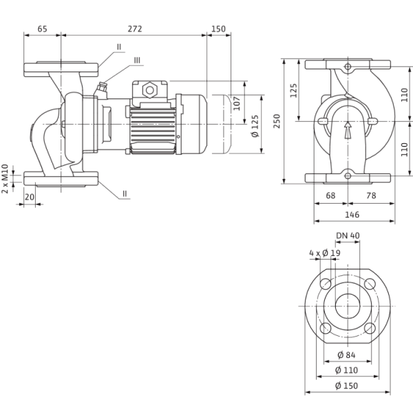Насос с сухим ротором в линейном исполнении с резьбовым или фланцевым подсоединением.