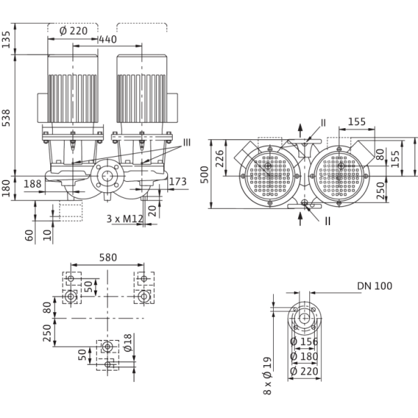 Сдвоенный насос с сухим ротором в исполнении Inline с фланцевым соединением