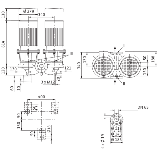 Сдвоенный насос с сухим ротором в исполнении Inline с фланцевым соединением