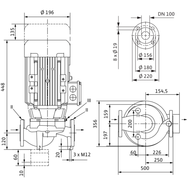 Фланцы имеют отверстия R 1/8 для измерения давления. На корпус насоса и промежуточный корпус нанесено катафорезное покрытие.