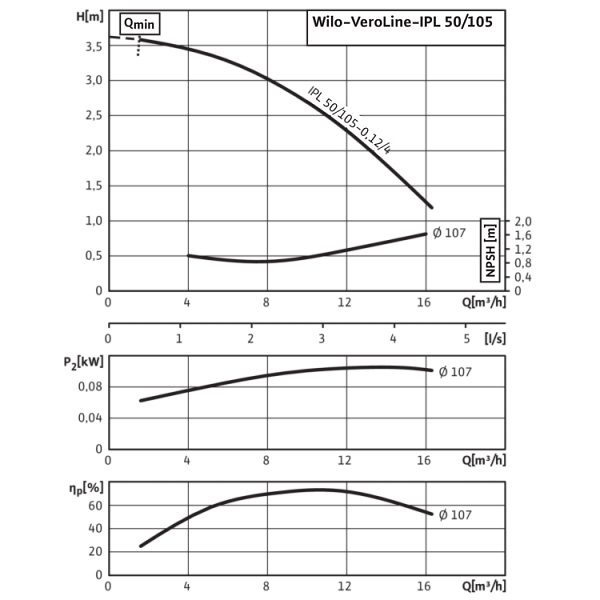 Базовое значение MEI для насосов с оптимальным КПД ≥ 0,70.КПД насоса с откорректированным рабочим колесом, как правило, ниже КПД насоса с полным диаметром рабочего колеса. За счет корректировки рабочего колеса насос настраивается на определенную рабочую точку, в результате чего снижается энергопотребление. Индекс минимальной эффективности (MEI) относится к полному диаметру рабочего колеса.При различных рабочих точках данный насос может работать эффективнее и экономичнее, если, например, управление его работой осуществляется путем регулирования переменной частоты вращения, благодаря которому насос адаптируется к характеристикам соответствующей системы.Информацию по базовому значению эффективности см. на интернет-странице www.europump.org/efficiencycharts.На насосы, потребляющие мощность > 150 кВт, или имеющие подачу QBEP < 6 м3/ч, не распространяются требования по экологическому проектированию водяных насосов. Поэтому значение MEI не указывается.