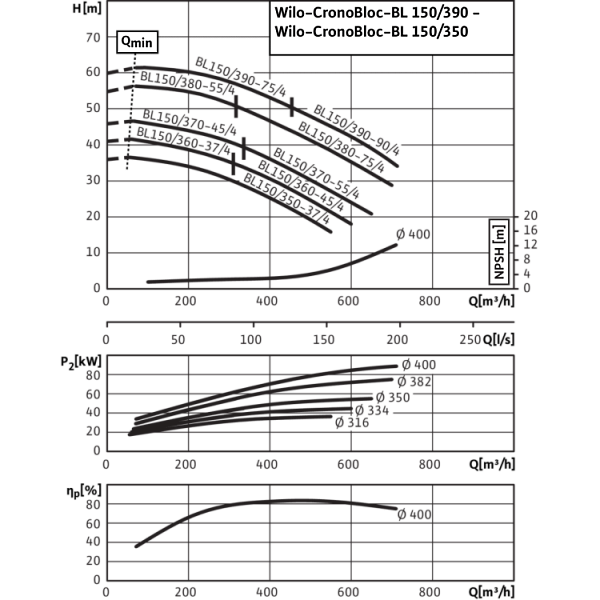 Базовое значение MEI для насосов с оптимальным КПД ≥ 0,70.КПД насоса с откорректированным рабочим колесом, как правило, ниже КПД насоса с полным диаметром рабочего колеса. За счет корректировки рабочего колеса насос настраивается на определенную рабочую точку, в результате чего снижается энергопотребление. Индекс минимальной эффективности (MEI) относится к полному диаметру рабочего колеса.При различных рабочих точках данный насос может работать эффективнее и экономичнее, если, например, управление его работой осуществляется путем регулирования переменной частоты вращения, благодаря которому насос адаптируется к характеристикам соответствующей системы.Информацию по базовому значению эффективности см. на интернет-странице www.europump.org/efficiencycharts.На насосы, потребляющие мощность > 150 кВт, или имеющие подачу QBEP < 6 м3/ч, не распространяются требования по экологическому проектированию водяных насосов. Поэтому значение MEI не указывается.