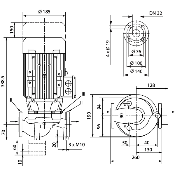 Одноступенчатый центробежный насос с сухим ротором компактного линейного типа с прифланцованным электродвигателем трехфазного тока и цельным валом или с промежуточным корпусом и унифицированным электродвигателем (исполнение N), жестко присоединенным с помощью муфты. Серия IPL предназначена для установки в трубах или на фундаменте. Консоли доступны в качестве дополнительных принадлежностей. С не зависящим от направления вращения скользящим торцовым уплотнением в кожухе с принудительным охлаждением и снижающим кавитацию синтетическим рабочим колесом.
