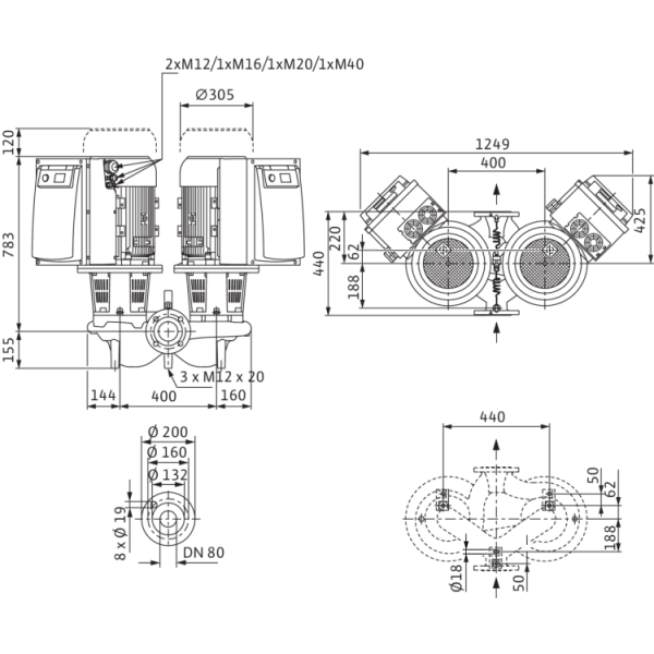 Циркуляционный насос с сухим ротором в исполнении Inline с фланцевым соединением Wilo CronoTwin-DL-E 80/160-11/2