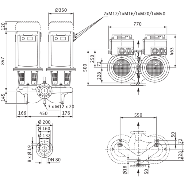 Циркуляционный насос с сухим ротором в исполнении Inline с фланцевым соединением Wilo CronoTwin-DL-E 80/190-18,5/2