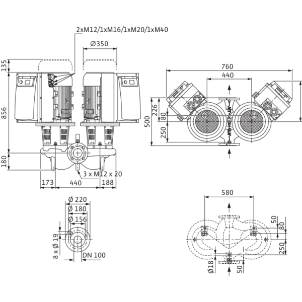 Циркуляционный насос с сухим ротором в исполнении Inline с фланцевым соединением Wilo CronoTwin-DL-E 100/165-22/2