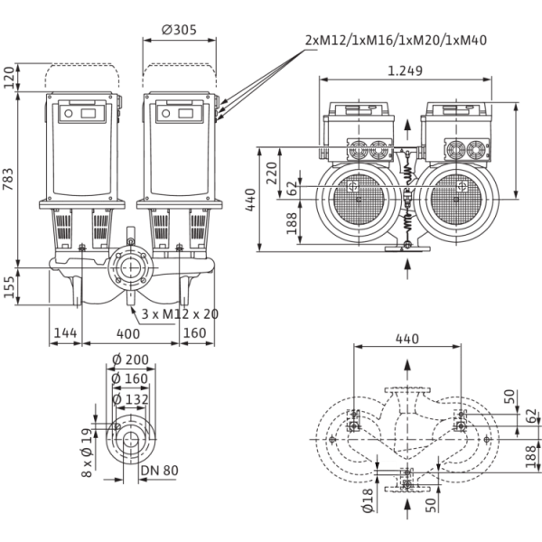 Циркуляционный насос с сухим ротором в исполнении Inline с фланцевым соединением Wilo CronoTwin-DL-E 80/160-11/2-R1