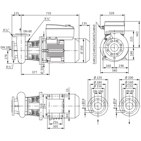 Монтаж на трубопроводе (при мощности мотора до ≤ 15 кВт)