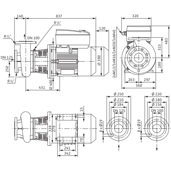 - Спиральный корпус блочного типа с размерами фланцев и корпуса согласно DIN EN 733, а также фланцами PN 16 согласно EN 1092-2