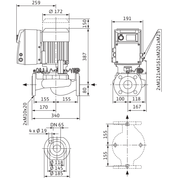 Циркуляционный насос с сухим ротором в исполнении Inline Wilo VeroLine-IP-E 65/115-1,5/2